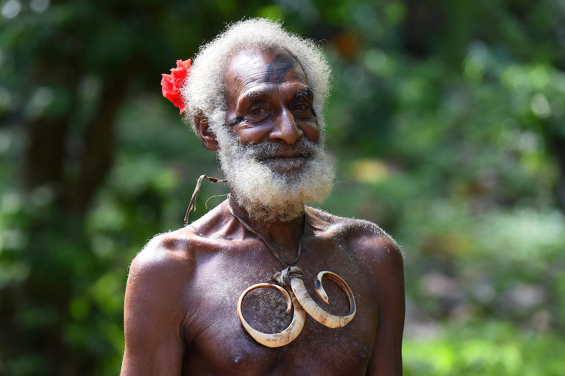 L’Île Ambrym dans les Vanuatu est surnommée « l’île noire » à cause de son volcanisme et de sa tradition de magie noire, empreinte de mystère. Dans les villages, les anciennes coutumes jouent un rôle important dans la vie quotidienne des habitants. Les « Man blong Majik » sont traités avec le plus grand respect et pratiquent la sorcellerie et la magie. Ambrym offre au visiteur des caractéristiques uniques, telles que les magnifiques tam-tams sculptés dans des troncs d’arbre, les dessins avec du sable, les masques en fougère noire et les danses locales. La danse la plus frappante est la danse Rom, ou masquée : des « esprits » masqués et costumés de près de trois mètres de haut piétinent le sol en suivant les rythmes ancestraux des tam-tams.