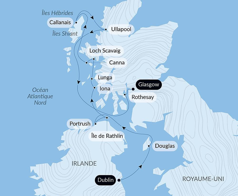 - ItinéraireDublin (Irlande) à Glasgow, Écosse (Royaume-Uni)Durée10 jours